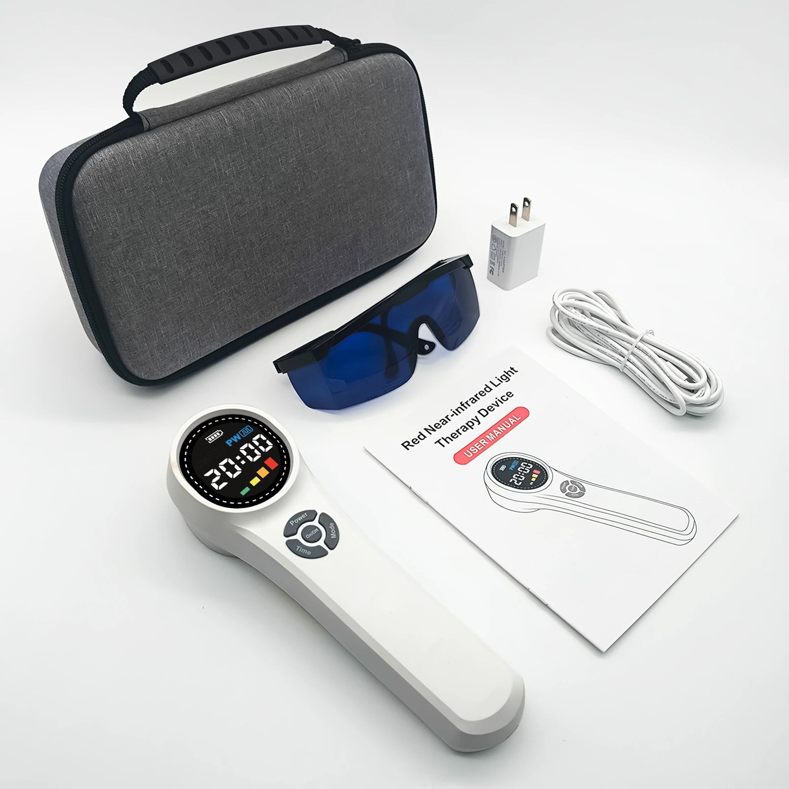 • Tri-Wavelength Technology 660nm, 810nm, 980nm: 660nm red light: Absorbed by skin to enhance collagen production and support skin health. 810nm near-infrared light: Penetrates deep into tissues to accelerate muscle recovery and reduce stiffness.980nm infrared light: Targets deep joint pain for arthritis, knees, shoulders lasting relief. (Note: 808nm you can only see red dots when working, 980nm is totally invisible)