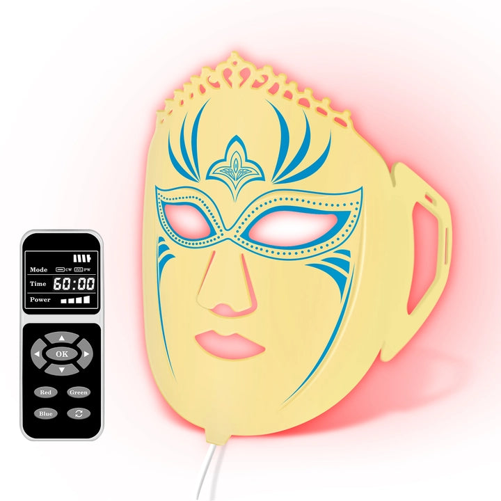 This mask has a fun masquerade design that looks great. It is reasonable quality with the exception that the gold flakes away too easily. It works well overall. The lights are bright and the remote is responsive. The operation is simple, and it also comes with instructions. The mask is soft and comfortable, but best used when laying down because it easily slips around. It seems to be helpful to my skin. It's very nicely packaged and presented. This would make a great gift.